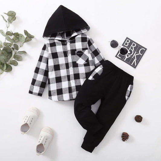 Toddler Baby Boy Girl Clothes Flannel Hooded Plaid Shirt and Long Pants Fall Winter Spring Sweatsuit